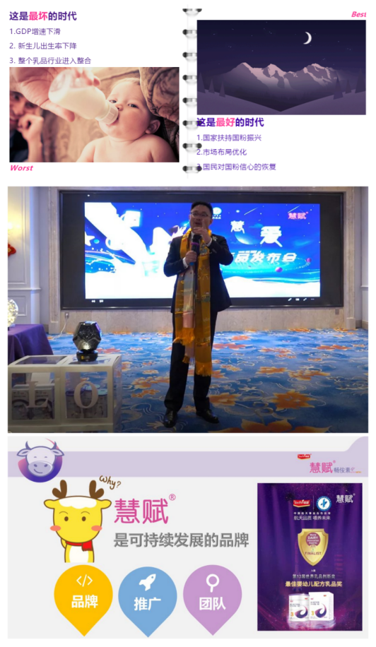 在產品的研發趨勢上,會深入的研究和升級,乳脂肪球膜的應用、母乳低聚糖的應用、母乳有效蛋白的提純,這些都是全球嬰配粉乳企的科研力量的聚焦所在。宜品作為較早就擁有國家級實驗室的高研發力量的乳企,必然當仁不讓,與國際尖端的乳業科研力量連橫攜手,將這些創新快速應用于宜品旗下的核心戰略品牌和產品,為宜品的持續騰飛注入源源不斷的科技能量! 可持續發展的慧賦 牟總的演講讓到場嘉賓對乳品行業新興科研力量充滿的無限的憧憬。而接下來周總的報告讓大家正視目前母嬰行業所面臨的現實。