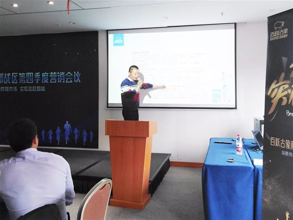 會議伊始,百躍古象南部戰區總監葉青致辭,首先回顧了南部戰區2019年前三季度的發展、并肯定了大家的工作業績,同時制定南部戰區第四季度業績指標。葉總指出面對變化莫測的市場環境,順勢看雄心,逆勢看決心。百躍古象營銷人以夯實的業務基礎,敏銳洞察市場環境,把握機會,充分展現古象營銷人的價值和戰斗力;服務好每一位客戶,堅信百躍古象羊奶在市場上的優越性;相信百躍古象團隊可以越戰越勇,嶄露頭角,力壓群雄!沖刺四季度,奮力奪全年。 秣馬厲兵,使命必達 02