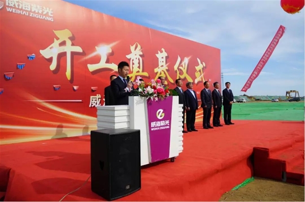 威海市經區工委委員、管委副主任梁永波先生致辭: 首先向威海紫光科技智能產業園的開工表示了熱烈祝賀。 威海紫光科技智能產業園的開工,是威海紫光積極響應市政府大力發展稅源經濟,以發展高新技術產業為宗旨,走科技進步與創新之路的結果。該項目的開工建設,將進一步加快推進企業創新能力建設,完善健康產業發展鏈條,同時也必將在促進威海市經濟發展、產業結構調整和經濟發展轉型等方面做出積極的貢獻。