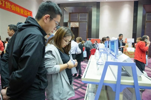 訂貨現場人頭攢動,大家一邊聽工作人員介紹產品,一邊親身體驗產品,訂貨氛圍輕松而熱烈,隨處可見駐足觀摩和積極填單的身影。