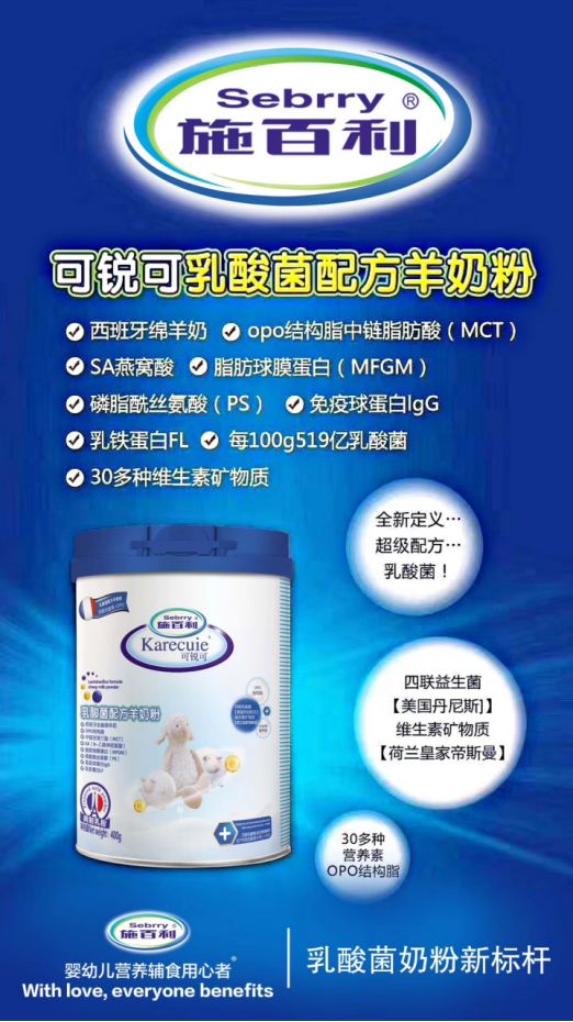 秋冬大熱六單品 全球資源匯品質之選 消費者要的是產品與質量,母嬰店直面消費者,想留住客得品質當先。 施百利,以“大健康時代,精準營養”為目標,四季精品輔食、營養品滿布,秋冬季,乳酸菌羊奶粉、乳酸菌奶粉、乳鐵蛋白、牛初乳、益生菌、DHA藻油、酵素乳酸菌粉等為大熱。 匯聚美國、荷蘭、西班牙等國、臺灣等地區優質資源為品質之選。 01 施百利乳酸菌配方羊奶粉