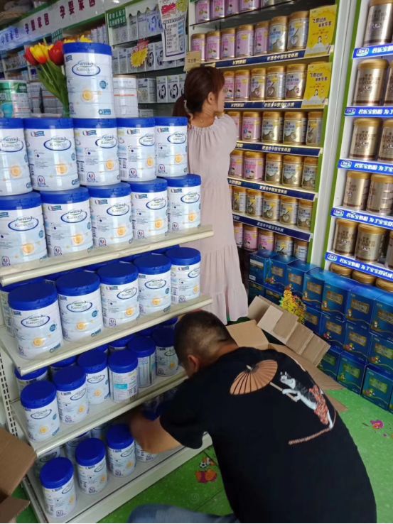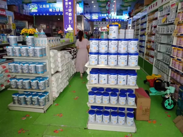 再說其“同類”,乳酸菌奶粉,多月市場鋪設與消費者教育,已是門店盈利代表性產品,多是整面展柜陳列的存在,顯眼并符合消費者購物習慣的陳列位,消費者成箱購。