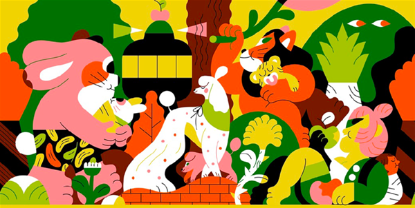 1.與荷蘭插畫師的跨界合作 這次發布會推出的新品中,與荷蘭著名的插畫師Rick Berkelmans的跨界合作聯名款,尤令人印象深刻。 該系列以獨特的造型和濃烈的色彩,傳達出一種強烈的個性,恰與好孩子內斂和低調的風格形成一種既沖撞又和諧的效果。當碳灰的基調遇上高飽和度的紅黃綠藍,工業理性風悄然被對生活的熱情激蕩,愛意便如暖流涌上心頭,那一刻,所謂世間的美好,均不過如此。 除了色彩的大膽使用,插畫師還在緊湊的空間里講述了幾個溫馨的育兒故事:身穿香蕉裙的兔子媽媽深情望著懷里的小嬰兒,像極了每一個初為人母者;獅子爸爸手扶樹枝,翹首盼望伴侶早點帶獵物回來,好讓快要餓暈的小寶貝飽食一頓,而全然顧不上旁邊正在嘲笑自己的孔雀和狒狒,聯想起網傳的各種爸爸帶娃糗事,簡直讓人立即嘴角上揚;而當活力滿滿的一天結束,差不多已筋疲力竭的娃沉沉睡去宛如天使,明月與群星的無聲陪伴令人心安,動物朋友們,咱們夢里見。