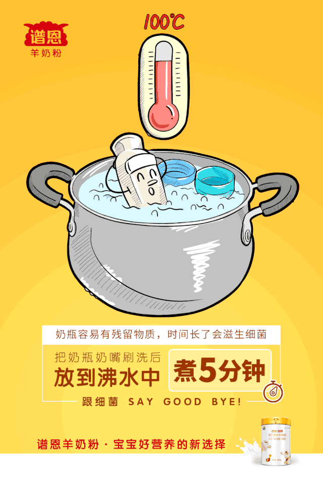 通過(guò)簡(jiǎn)單地市場(chǎng)走訪發(fā)現(xiàn): ①奶粉沖調(diào)水溫要求在40-55℃之間的奶粉品牌相對(duì)較多; ②奶粉沖調(diào)水溫要求最高不超過(guò)70℃; ③也有極少?zèng)_調(diào)水溫要求在40℃以下的; 由于40℃和70℃分別介于低溫和高溫的臨界,爭(zhēng)議最大。今天小恩帶大家進(jìn)一步探討,看看采用這兩種沖調(diào)水溫是何道理~ 說(shuō)法一: 70℃更安全,但費(fèi)時(shí) WHO(世界衛(wèi)生組織)和聯(lián)合國(guó)糧農(nóng)組織(FAO)在2007年出版的《安全制備、貯存和操作嬰兒配方奶粉:指導(dǎo)原則》中建議嬰幼兒配方奶粉的沖調(diào)水溫應(yīng)該為70℃,這樣的溫度可以降低阪崎桿菌及沙門氏菌對(duì)寶寶健康的威脅。 WHO/FAO在當(dāng)時(shí)在指導(dǎo)中認(rèn)為,嬰幼兒配方奶粉不是無(wú)菌產(chǎn)品,可能含有引起疾病的病原體,通過(guò)正確的配制和操作可以降低致病風(fēng)險(xiǎn)。 這就是用70℃度白開水沖調(diào)奶粉的來(lái)由。這樣的溫度的確會(huì)破壞掉一部分不耐高溫的營(yíng)養(yǎng)素,如降低蛋白活性,產(chǎn)生一些蛋白質(zhì)絮狀物沉淀,破環(huán)一部分維生素C等。但是這樣的損失只是少部分,用70℃度沖調(diào)也是可行的。 阪崎桿菌對(duì)提抗力差的嬰幼兒群體威脅極大,所以不足2個(gè)月的嬰兒、早產(chǎn)兒/低體重兒及免疫力差的寶寶,可以用70℃的水溫來(lái)沖調(diào)配方奶粉,只是沖調(diào)好后的奶粉需要更長(zhǎng)的冷卻時(shí)間。 說(shuō)法二: 40℃營(yíng)養(yǎng)活性高,沖調(diào)更快捷 多數(shù)奶粉的沖調(diào)建議都低于70℃,普遍為40-55℃之間,甚至更低。例如譜恩綿羊奶粉的建議沖調(diào)溫度就為45-55℃。其目的之一就是最大程度保護(hù)奶粉中各營(yíng)養(yǎng)物質(zhì)的活性,此外,奶粉在這個(gè)溫度區(qū)間更易溶解,并且沖調(diào)之后能夠很快達(dá)到寶寶入口的適宜溫度。 盡管阪崎桿菌對(duì)寶寶健康威脅很大,為什么這些奶粉的建議沖調(diào)溫度遠(yuǎn)遠(yuǎn)低于70℃呢?其實(shí)為了最大限度地保護(hù)嬰兒健康,大部分國(guó)家都在嬰幼兒配方奶粉標(biāo)準(zhǔn)中嚴(yán)格控制阪崎腸桿菌。 國(guó)際食品法典委員會(huì)(CAC)公布了《嬰幼兒配方奶粉的衛(wèi)生操作規(guī)范》,對(duì)即食食品中的單增李斯特菌和嬰兒配方奶粉(適用于6個(gè)月以下嬰兒的配方奶粉)中的阪崎腸桿菌進(jìn)行了限量規(guī)定。 2010年,歐盟委員會(huì)(EC)發(fā)布關(guān)于食品微生物標(biāo)準(zhǔn)2073/2005的修訂條例No.365/2010,規(guī)定針對(duì)6個(gè)月以下嬰兒奶粉進(jìn)行抽樣時(shí),每批次奶粉共抽檢30個(gè)樣品,每個(gè)樣品不超過(guò)10克,其中阪崎腸桿菌的檢出量應(yīng)為0。 美國(guó)食品藥品管理局(FDA)頒布的21CFR106.55中要求針對(duì)6個(gè)月以下嬰兒奶粉進(jìn)行抽樣時(shí),每批次奶粉共抽檢30個(gè)樣品,每個(gè)樣品不超過(guò)10克,其中腸桿菌屬(包含阪崎腸桿菌)應(yīng)為“未檢出”。 我國(guó)國(guó)家標(biāo)準(zhǔn)《GB 10765-2010 食品安全國(guó)家標(biāo)準(zhǔn) 嬰兒配方食品》要求,針對(duì)6個(gè)月以下的嬰兒配方奶粉進(jìn)行抽樣時(shí),每批次奶粉共抽檢3個(gè)樣品,每個(gè)樣品為100克,并且不得檢出阪崎腸桿菌。 也就是說(shuō)在WHO/FAO提出用70℃水溫沖調(diào)奶粉,來(lái)降低嬰幼兒感染病原體后,各國(guó)還相繼頒發(fā)了嚴(yán)格的衛(wèi)生標(biāo)準(zhǔn),來(lái)限制致病菌在配方奶粉中的限量,而且均為零檢出。因此之后對(duì)使用高溫沖調(diào)奶粉的要求也自然降低。 一般正常銷售的配方奶粉,質(zhì)量安全都有保障,用40℃左右的水溫沖調(diào)也可放心。由于每種奶粉的配方有差異,溶解性各不相同,參考奶粉包裝的建議最好。 譜恩奶粉沖調(diào)攻略 1、把奶瓶奶嘴刷洗后放到沸水中煮5分鐘
