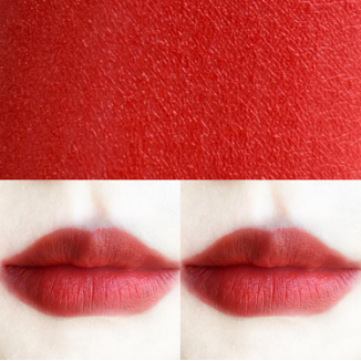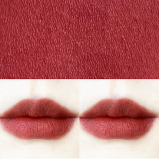 201純臻緋紅 上嘴也是絲絨啞光的質(zhì)地,上嘴有一種富貴感,又不會(huì)拒人于千里之外。厚涂是高貴大氣范,薄涂鄰家小妹,是一支一年四季都能常備的色號(hào)。只需一抹,氣場(chǎng)蹭蹭蹭的就上來(lái)了,非常有女王范兒。它不像別的啞光唇膏那樣干,然后就又難涂開,這支純臻緋紅一抹就上色,能很好地遮蓋原本唇色,仿佛為雙唇穿上了絲絨禮服。涂上它,整個(gè)人看著都仿佛變很“貴”了。