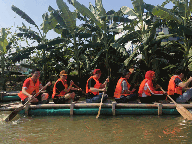 為了增進各部門新老員工之間的了解、緩解工作壓力、增強員工的團隊合作精神。經過精心準備和籌劃,10月19日,團建拓展活動如期舉行。 本次團建活動在番禺海鷗島天下先生態園開展,以新穎有趣的比賽方式進行。 竹筏競技,動作統一 配合默契,“讓我們蕩起雙槳,小船兒推開波浪