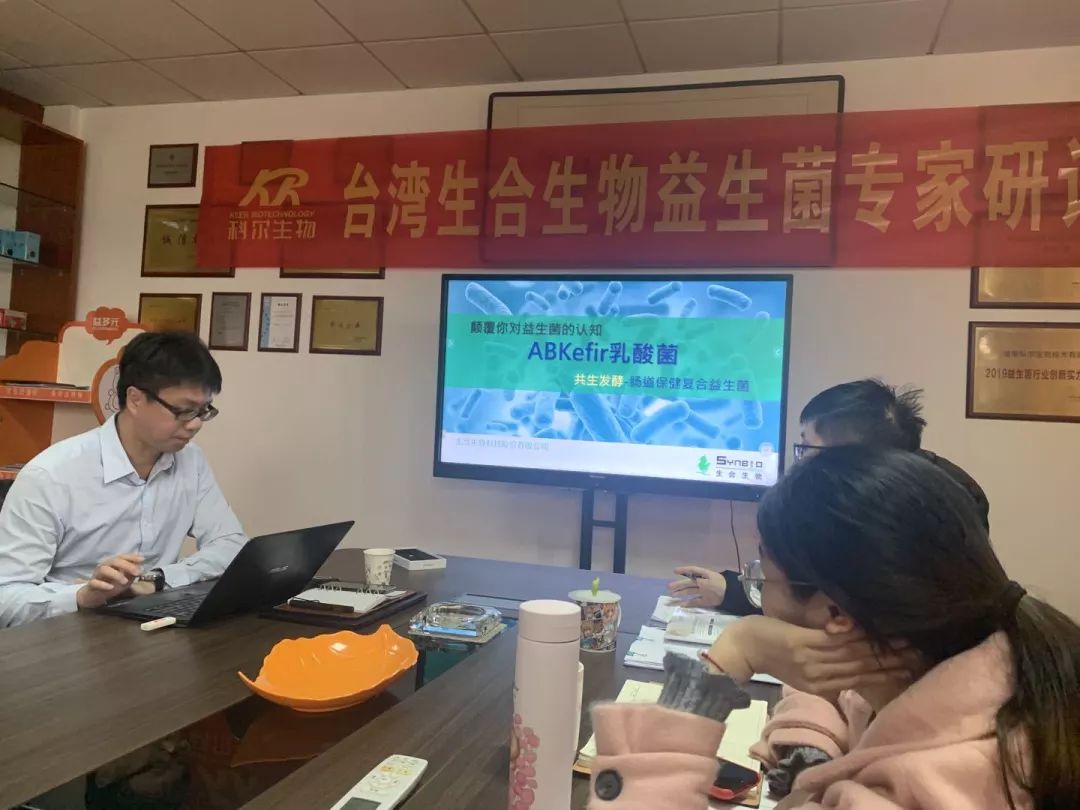 2019年12月10日,在科爾生物會(huì)議室舉行益生菌專家研討會(huì),參與人員有來自臺灣生合生物總部的專家技術(shù)團(tuán)隊(duì),生合生物揚(yáng)州分公司團(tuán)隊(duì),湖南科爾生物董事長王開道先生、副總經(jīng)理王國銘先生、運(yùn)營總監(jiān)吳剛先生以及研發(fā)團(tuán)隊(duì)、培訓(xùn)團(tuán)隊(duì)。
