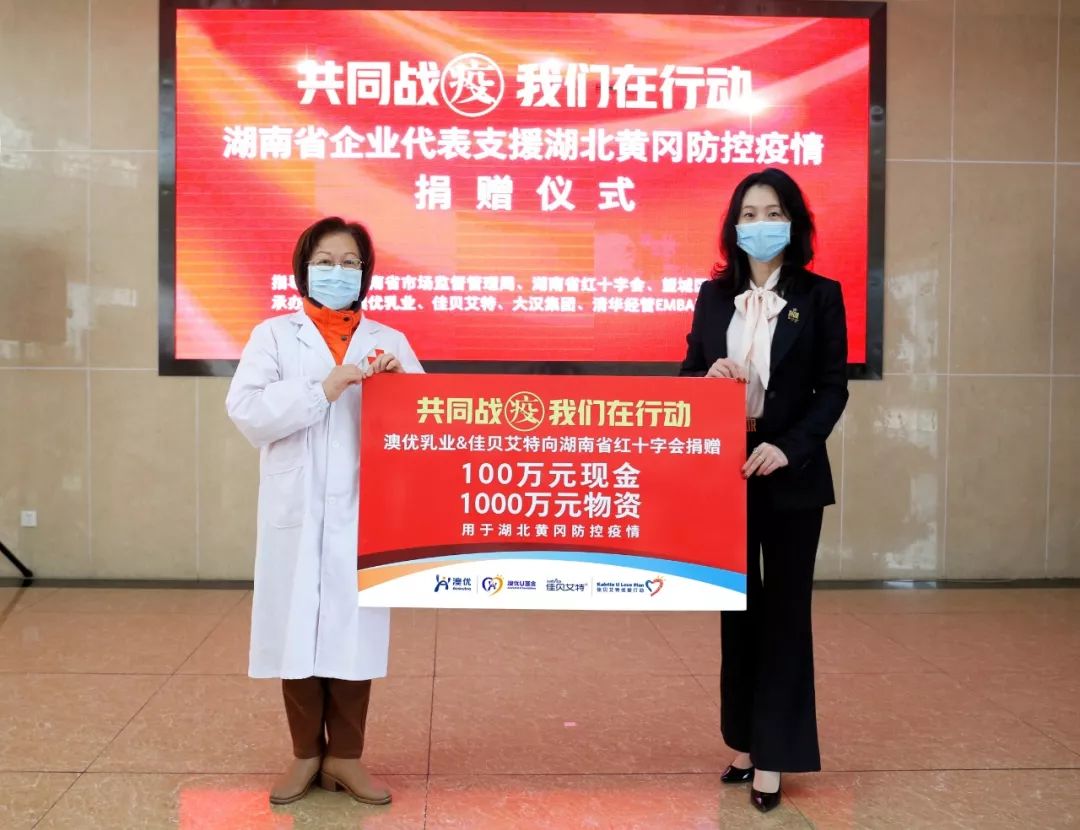 2月13日,由湖南省市場監督管理局、湖南省紅十字會、望城區人民政府共同指導的“共同戰‘疫’·我們在行動——湖南省企業代表支援湖北黃岡防控疫情”捐贈儀式在澳優乳業望城工業園舉行。