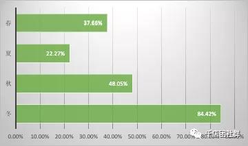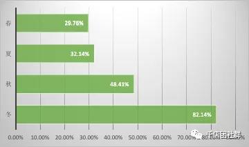 簡析:由以上調查數據可知,在鄉鎮母嬰店中單價在20-50 元的嬰幼兒護膚品最多,占86.9%,比市區店多了三成還多,單價在50-100 元的產品僅有10.71%,比市區店的46.75%少了35%還多。鄉鎮消費者收入較低,消費水平比城市低,對價格敏感一些,母嬰店售賣相對低價的產品就能滿足大多數人的需求。但隨著消費水平的提升,高價產品的需求會增加,母嬰店可以在導購推薦、促銷上主動挖掘這方面的潛力。 5、貴門店嬰幼兒護膚品哪些季節賣的比較好?(市區店)