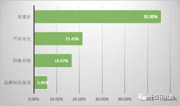 簡析:由以上調查數據可知,與市區母嬰店一樣,鄉鎮店的數據同樣表明,在秋冬季節市場對嬰幼兒護膚品的需求較大。這說明嬰幼兒護膚品行業季節性很強,受氣候的影響較大,存在著周期性的淡旺季。母嬰店在經營中,要把握這種規律,調整自己的經營策略,秋冬季時可以適度擴大商品庫存量,春夏季時則酌情減少。 7、貴門店消費者在選擇嬰幼兒護膚品時最看重什么?(市區店)