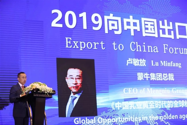 蒙牛集團總裁盧敏放出席“2019向中國出口”論壇并發表演講 一直以來蒙牛按照這一思路,積極在全球布局優質乳業資源搭建“Global for China”產業鏈,當下中國已經進入優生優育的階段,中國媽媽們對高端奶粉和嬰幼兒營養產品的需求大幅提升,蒙牛收購貝拉米正是對“Global for China”產業鏈的補全和強化。