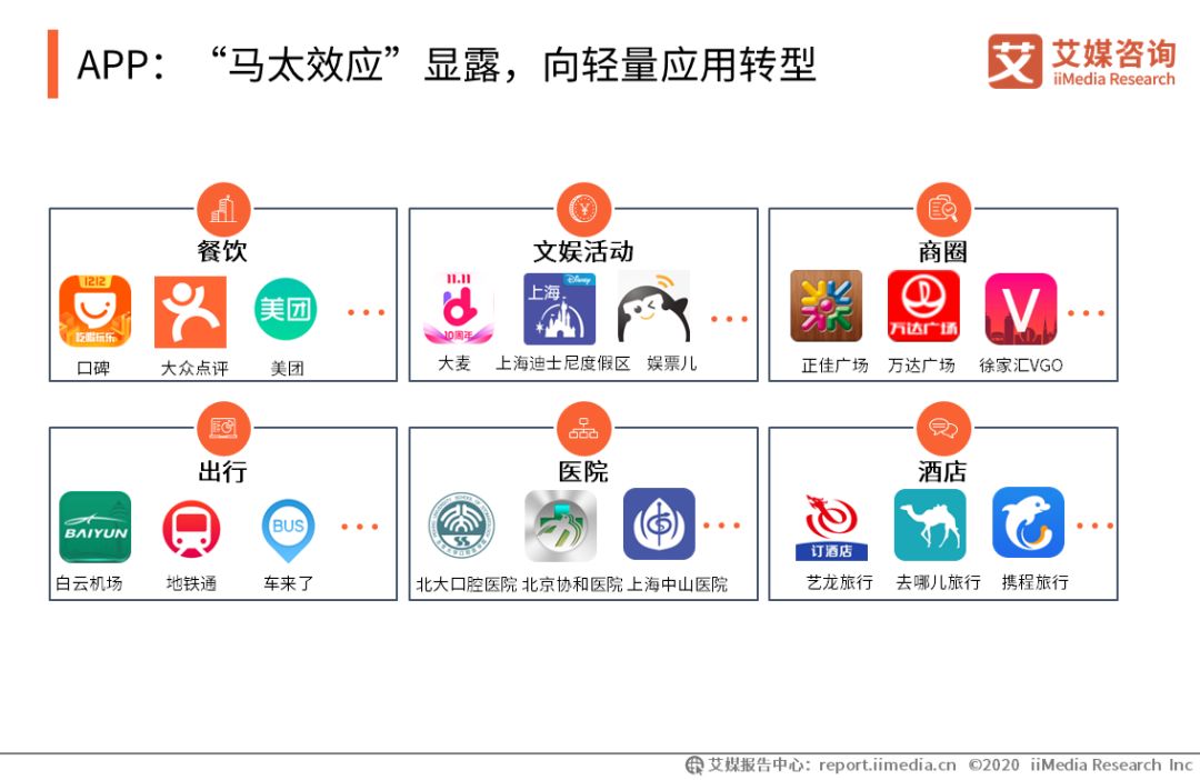APP:“馬太效應”顯露,向輕量應用轉型 自2008年蘋果推出Appstore后,APP產業進入了“從無到有、再到迅速增長”的階段。在智能手機的快速普及和用戶數量的增長的背景下,新的APP不斷涌現出,為各類服務提供便利條件。艾媒咨詢分析師認為,隨著移動互聯網人口紅利消失,流量逐漸轉移到頭部APP,APP獲客成本高、使用頻次低等缺點浮現,APP相當一部分的功能承載將轉向輕量應用。