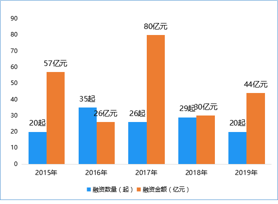 此外,讓人唏噓的是,2019年少兒編程教育、K12英語輔導、線下早教機構成為爆雷重災區,“資金鏈斷裂”、“跑路”、“關閉潮”等詞匯頻頻上熱搜,即使多年的老牌機構也不能幸免,諸如培正逗點跑路、愛樂樂享突然閉店、孩子無處可上課,家長維權又遭遇“踢皮球”,而韋博“關店潮”更是引發教育分期市場巨變。 專業母嬰連鎖、母嬰社交電商、母嬰零售解決方案成零售投融資細分方向 2019年共發生20起母嬰零售相關投融資事件,投融資數量與2018年相比有所下滑,但融資金額卻有所攀升,達44億人民幣,其中比較重大的融資新聞包括貝店完成高瓴資本、紅杉資本領投的8.6億元戰略投資,B2B2C平臺海拍客獲D輪1億美金融資。 2015年-2019年母嬰零售投融資數量與金額對比
