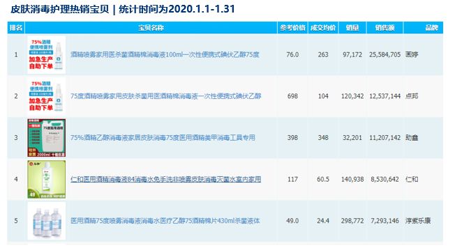 口罩頭部品牌表現(xiàn),南丁位居榜首,主要銷售嬰童口罩,且春節(jié)期間仍發(fā)貨成為品牌勝出的重要因素;百立德等4個(gè)國(guó)產(chǎn)品牌首次入榜春節(jié)檔,由于庫(kù)存?zhèn)湄泦栴}3M、霍尼韋爾、pitta增長(zhǎng)則不及天貓整體;特殊時(shí)期防護(hù)用品統(tǒng)籌調(diào)配,未來品牌格局仍待觀察。
