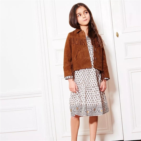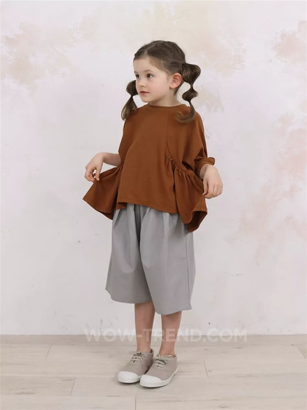 肉桂色+黑色 帶有低調柔和的視感,散發著質樸與黑色襯托,在該色彩下剪裁寬松隨性的服裝版型也非常適用于孩子們日常的生活裝使用。
