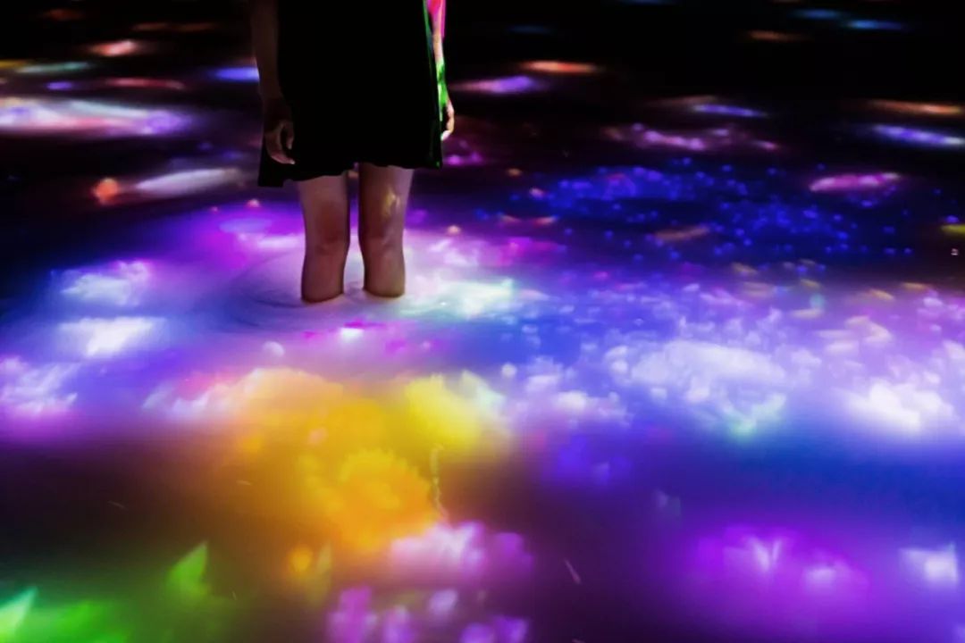TeamLab 選用智能藍和蜜柑酒等色彩,以超真實手法渲染花卉和風景印花。