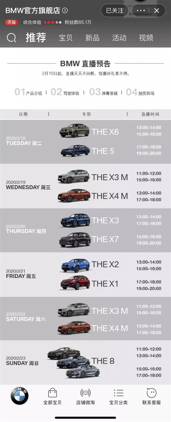 2月10日復工后,寶馬、奧迪等 23 個全球汽車品牌入駐淘寶開播賣車,每天 100 場汽車直播,有專業主播介紹,不但詳細介紹車內外情況,還可以帶人“云試駕”。 云發布會:小米10一分鐘賣出2億