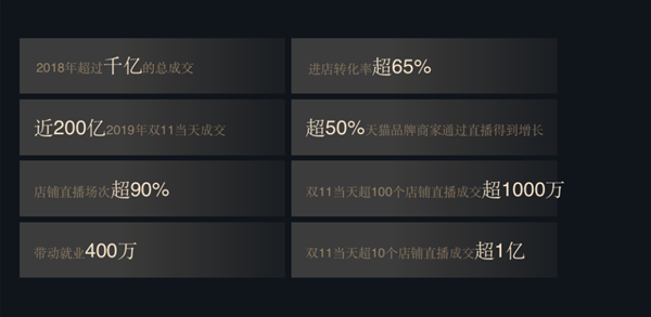 早在2018年,淘寶直播交易額就超過了1000億,2019年雖然沒有公布具體的數據,但是雙11, 單日帶動成交接近200億,成為商家最為快速及有效的銷售模式之一。同時,還帶動了接近400萬的就業人數。 2020年,一場疫情,將淘寶直播推向了前所未有的風口,引領消費之變。