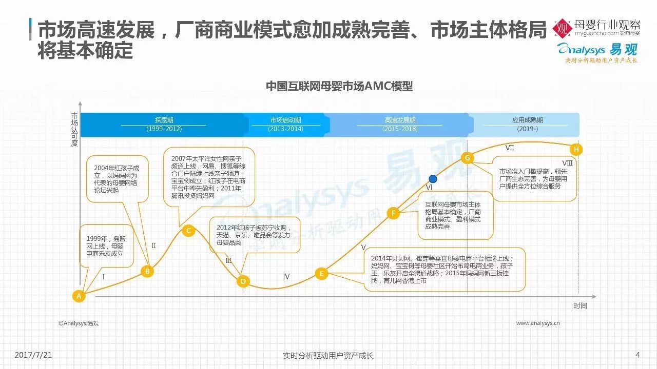 從中國的母嬰市場網(wǎng)絡(luò)零售情況來看,母嬰市場網(wǎng)絡(luò)零售占到整體網(wǎng)絡(luò)零售總額的5.9%,我們預(yù)計2017年能達(dá)到6.9%左右的份額。原來大家覺得做母嬰更多的應(yīng)該在寶寶層面做,有一個數(shù)據(jù)顯示2017年媽媽消費占比也是在提升的,這意味著現(xiàn)在家庭消費的觀念已經(jīng)越來越強了。 3、互聯(lián)網(wǎng)母嬰市場AMC模型