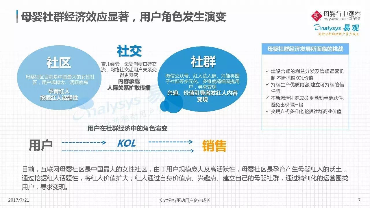 母嬰行業(yè)和其他行業(yè)不太一樣,消費者對于信任、情感是非常看重的。作為廠商要提供更值得可信的內(nèi)容,讓這些消費者能夠和我們有心靈和情感上的交流,最后他愿意為這份信任買單,為這份情感買單。 6、母嬰社群經(jīng)濟效應(yīng)顯著