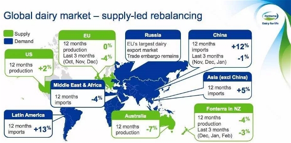 恒天然集團首席執行官施牧德在業績會議上表示,公司的策略依然奏效,在報告期內的全球多個市場,乳制品的供需處于“非常好的平衡”,“包括中國也回到了市場中來”,過去12個月中國的乳制品進口量錄得12%的增長。比起歐洲,這一平衡得讓新西蘭給奶農獲得更多分紅。