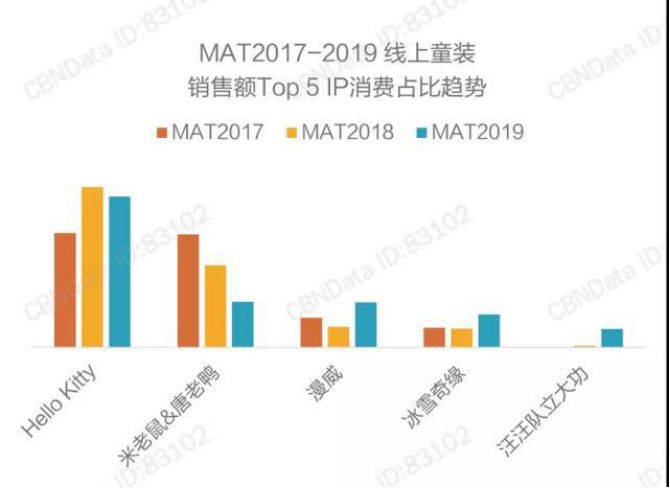 來源:艾瑞咨詢 由此可以看出,童裝用品類的消費(fèi)采購者角色主要是大人。但是使用者與采購者的分離也必須正視孩子的使用感受,事實(shí)也證明童裝消費(fèi)中,除了父母,孩子的參與度加重,正在影響消費(fèi)決策。 根據(jù)此前極致傳媒的調(diào)研顯示:調(diào)研的1200多位兒童及其背后的家長在中國市場的媒介行為,也對比了全球42個國家?guī)兹f名兒童的數(shù)據(jù),我們發(fā)現(xiàn),全球超過八成的家長都認(rèn)為自己的孩子影響了他們所有品類購買的決策。 既然消費(fèi)市場中的消費(fèi)主體有所變化,童裝品牌又該如何轉(zhuǎn)變產(chǎn)品和營銷方式,突破增長? 從產(chǎn)品端來看,“小大人”在參與購買決策時對“性價比”的考慮程度比較低,也就是對價格的敏感度較低。所以能俘獲“小大人”的切入點(diǎn)在于顏值。 未來一定是顏值經(jīng)濟(jì)時代,不僅90后新生代媽媽對產(chǎn)品顏值要求甚高,10后小大人的要求更高。他們在新環(huán)境下受父母審美影響,再加上外界信息量巨大,在早期就建立了一套自己的“審美觀”,對產(chǎn)品顏值提出更高要求。 童裝屬于母嬰用品中為數(shù)不多的非標(biāo)品類,在產(chǎn)品的樣式、布料花紋、圖案等的“可塑性”很強(qiáng),這也是童裝品牌在顏值經(jīng)濟(jì)時代的一大優(yōu)勢。 另外“酒香也怕巷子深”,優(yōu)質(zhì)的高顏值產(chǎn)品需要營銷手段的加持。目前IP跨界聯(lián)名已經(jīng)屢見不鮮,但是選擇什么樣的IP形象是值得童裝品牌深思熟慮的。 童裝跨界合作,聯(lián)合時尚IP是常見玩法。根據(jù)CBNData消費(fèi)大數(shù)據(jù)顯示:2019年線上童裝銷售額最高的童裝IP依次為Hello Kitty、漫威、米老鼠&唐老鴨、冰雪奇緣、汪汪隊(duì)立大功。值得注意的是米老鼠&唐老鴨首次被漫威系列超越,占比逐年下降;汪汪隊(duì)立大功作為一個新興IP,消費(fèi)占比猛增,是一潛力IP;Hello Kitty興盛幾十年,即使2019年有下降趨勢,但是依然遙遙領(lǐng)先其他IP。