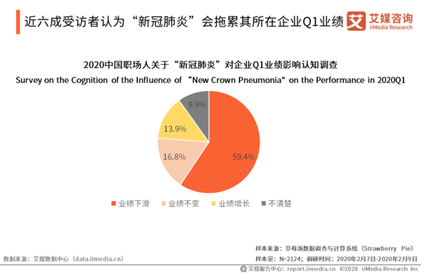 近六成受訪者認(rèn)為“新冠肺炎”會拖累其所在企業(yè)Q1業(yè)績 iiMedia Research(艾媒咨詢)數(shù)據(jù)顯示,59.4%的受訪職場人認(rèn)為“新冠肺炎”會導(dǎo)致其所在企業(yè)第一季度業(yè)績下滑;13.9%的受訪職場人認(rèn)為“新冠肺炎”會促進(jìn)其所在企業(yè)第一季度業(yè)績增長。艾媒咨詢分析師認(rèn)為,“新冠肺炎”對中國多個行業(yè)會造成負(fù)面影響,但對傳統(tǒng)行業(yè)變革升級以及線上行業(yè)加速發(fā)展產(chǎn)生了促進(jìn)作用,同時也會激發(fā)大量企業(yè)在未來加強(qiáng)提升風(fēng)險應(yīng)對能力。
