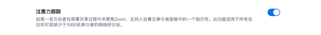 ZOOM還提供了注意力關注功能,可以看到聽眾或學生是否注視屏幕或是離開。