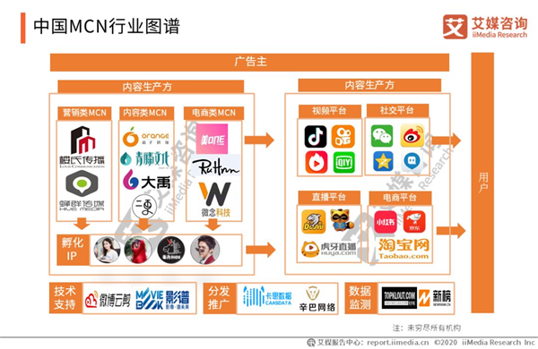 新型冠狀病毒疫情持續(xù),很多行業(yè)的發(fā)展受到巨大沖擊。但在某些領(lǐng)域,卻迎來了空前的發(fā)展機遇。“宅經(jīng)濟”推動了長、短視頻平臺和直播的發(fā)展,MCN機構(gòu)順勢勃興,近期動作頻頻。日前,字節(jié)跳動完成了對專注于趕海視頻的MCN機構(gòu)風馬牛傳媒的投資,持股比例達25%;三五互聯(lián)發(fā)布公告稱擬以發(fā)行股份及支付現(xiàn)金的方式購買MCN機構(gòu)上海婉銳100%股權(quán),交易完成后,公司將切入MCN行業(yè),深入布局泛生活I(lǐng)P運營和互聯(lián)網(wǎng)營銷領(lǐng)域,構(gòu)建新零售平臺。 近年來,中國MCN機構(gòu)數(shù)量一路飆升,市場規(guī)模達到百億級別。艾媒咨詢數(shù)據(jù)顯示,在2019年的直播電商帶貨效益不斷展現(xiàn)后,預(yù)計到2020年中國MCN市場規(guī)模將進一步擴展,達到245.0億元;預(yù)計到2020年,中國MCN機構(gòu)數(shù)量將突破兩萬家,達到28000家。 艾媒咨詢分析師認為,目前行業(yè)機構(gòu)尚處于成長期,擁有產(chǎn)品和數(shù)據(jù)支撐的MCN商業(yè)模式初步獲得了資本認可,然而,隨著內(nèi)容產(chǎn)業(yè)入局者越來越多,行業(yè)競爭會更加激烈。同時,變現(xiàn)形式單一、內(nèi)容同質(zhì)化、行業(yè)版權(quán)保護意識薄弱、負面輿情多等也成為中國MCN產(chǎn)業(yè)發(fā)展面臨的主要難題與挑戰(zhàn)。 報告介紹 《2020-2021年中國MCN產(chǎn)業(yè)運行大數(shù)據(jù)監(jiān)測及趨勢研究報告》主要對中國MCN這一新興產(chǎn)業(yè)的發(fā)展現(xiàn)狀進行總結(jié)和前景分析,通過對MCN的行業(yè)發(fā)展情況、企業(yè)分布及規(guī)模、行業(yè)業(yè)態(tài)、主要服務(wù)模式、運營模式、海外MCN模式等進行了數(shù)據(jù)監(jiān)測,并重點針對如如涵控股、美ONE、青藤文化、蜂群、川上文化、風光霽月、Drama TV等具有典型意義的MCN企業(yè)進行案例分析,并且基于前述研究對當前中國MCN行業(yè)總體發(fā)展趨勢進行解讀,并深入研究其商業(yè)運作模式,預(yù)測2021年中國MCN行業(yè)的發(fā)展趨勢和運營模式。 核心觀點 中國MCN機構(gòu)數(shù)量一路飆升,市場規(guī)模達到百億級別 作為內(nèi)容產(chǎn)業(yè)的新興環(huán)節(jié),中國MCN產(chǎn)業(yè)自2017年出現(xiàn)了爆發(fā)式增長,機構(gòu)數(shù)量從數(shù)百家量級猛漲到上萬家量級,預(yù)計到2020年,中國MCN機構(gòu)數(shù)量將達到28000家。 2016-2017年中國MCN市場規(guī)模高速擴張,2018年市場規(guī)模達百億級,其中頭部貢獻率約六成,預(yù)計到2020年,中國MCN市場規(guī)模將升到245.0億元。 中國MCN行業(yè)資本進場謹慎,融資輪次以早期輪次為主 在整個文娛領(lǐng)域遇冷的情況下,中國MCN行業(yè)融資情況也并不火熱。從2016年至2019年,中國MCN行業(yè)融資數(shù)量分別為165、136、79、35起,呈逐年下降趨勢。 2018年有59.3%的MCN完成過融資,其中半數(shù)以上融資輪次集中在A輪(28.6%)和天使輪(23.8%),行業(yè)融資類型以早期輪次為主,MCN商業(yè)模式仍處于成長期。 中國MCN機構(gòu)盈利模式多元化,廣告營銷仍是主流 中國MCN機構(gòu)的盈利模式主要分為兩大類:一是面向C端用戶,如商業(yè)合作、流量分成、平臺補貼、廣告營銷、IP授權(quán)等;二是面向B端商家,主要通過衍生品銷售、紅人電商、直播打賞、內(nèi)容電商、知識付費等方式獲取營收。目前,比較主流的盈利模式有廣告營銷、內(nèi)容電商、自創(chuàng)品牌等。 中國MCN產(chǎn)業(yè)發(fā)展業(yè)態(tài)豐富,變現(xiàn)外延不斷拓寬 目前,中國MCN產(chǎn)業(yè)主要有七種業(yè)態(tài),以內(nèi)容生產(chǎn)和運營業(yè)態(tài)為基礎(chǔ)內(nèi)核,其他五大業(yè)態(tài)(營銷業(yè)態(tài)、電商業(yè)態(tài)、經(jīng)紀業(yè)態(tài)、社群/知識付費業(yè)態(tài)和IP授權(quán)業(yè)態(tài))作為變現(xiàn)外延,組合式謀求差異化發(fā)展。 海外MCN十年發(fā)展簡史,轉(zhuǎn)型之路成為前車之鑒 海外MCN機構(gòu)最早起源于美國YouTube的伙伴合作計劃,經(jīng)過多年的發(fā)展,海外MCN先后經(jīng)歷了以內(nèi)容博眼球的MCN 1.0、強調(diào)精細化和垂直化的MCN2.0,現(xiàn)在走到以流媒體為核心、多渠道探索變現(xiàn)方式的 MCN 3.0時代。拓寬視頻發(fā)布渠道、深耕垂直產(chǎn)品、開發(fā)營銷IP及周邊產(chǎn)品已成為MCN應(yīng)對市場變化的主要手段及盈利新模式。 中國MCN產(chǎn)業(yè)發(fā)展挑戰(zhàn)多多,國際化成為新方向 MCN機構(gòu)商業(yè)變現(xiàn)形式單一、紅人孵化機制不成熟、內(nèi)容同質(zhì)化、行業(yè)版權(quán)保護意識薄弱、負面輿情多等成為中國MCN產(chǎn)業(yè)發(fā)展面臨的主要難題與挑戰(zhàn)。未來,中國MCN會從以下幾個方面持續(xù)發(fā)力:加強行業(yè)監(jiān)管力度、融入互聯(lián)網(wǎng)行業(yè)新興技術(shù)、繼續(xù)深耕內(nèi)容垂直行業(yè),同時積極開拓國外市場等。 以下為報告節(jié)選內(nèi)容 行業(yè)背景概況(節(jié)選): 中國網(wǎng)紅經(jīng)濟背后的MCN 網(wǎng)紅經(jīng)濟火爆,其背后的MCN公司也逐步走進大眾視野。MCN(Multi-Channel Network)是一種多頻道網(wǎng)絡(luò)的產(chǎn)品形態(tài),最早源于美國的YouTube,但經(jīng)過本土化后,呈現(xiàn)出與美國MCN機構(gòu)截然不同的商業(yè)運作模式: