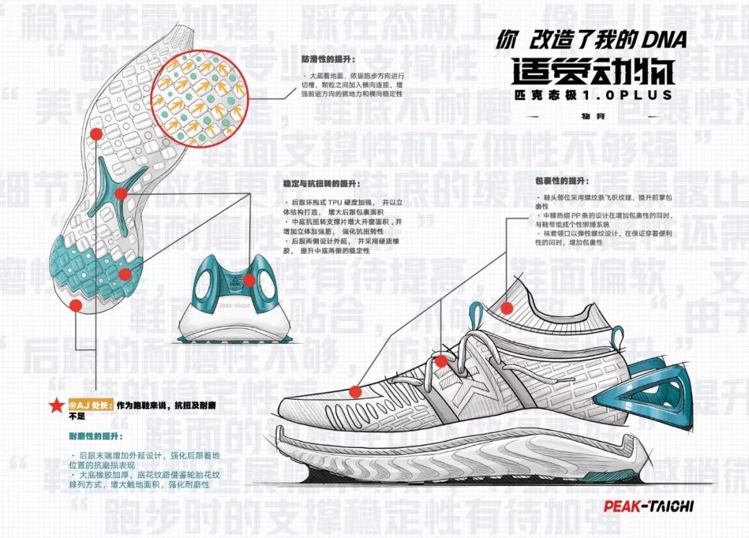 2019年5月,匹克態極發動1.0 Plus“差評”戰役,粉絲說設計很丑,那就提升顏值。粉絲說不耐磨、防滑不好和支撐不夠,那就功能上全面進化。