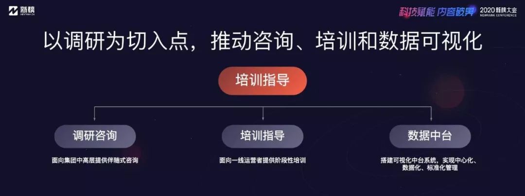 一、私域能否管理好 最重要的是企業(yè)矩陣的頂層架構(gòu)和方法 架構(gòu)和方法不是憑空而來的,首先來自于扎實(shí)的調(diào)研。以調(diào)研為基礎(chǔ),我們面向企業(yè)中高決策層提供伴隨式咨詢,面向一線人員輸出標(biāo)準(zhǔn)化文檔和培訓(xùn),并協(xié)助客戶開發(fā)了數(shù)據(jù)中臺系統(tǒng),把矩陣實(shí)時(shí)的數(shù)據(jù)表現(xiàn)、在線文檔和培訓(xùn)課程、營銷活動可能用到的工具等,都放在這個(gè)平臺之上,實(shí)現(xiàn)了軟知識和硬系統(tǒng)的結(jié)合。