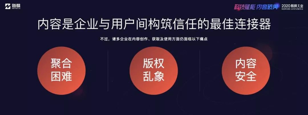 三、內(nèi)容安全和版權(quán)問題 一直是企業(yè)私域和新媒體運(yùn)營的一大困擾 內(nèi)容是企業(yè)和用戶之間的最佳連接器,但企業(yè)在創(chuàng)作、獲取和使用內(nèi)容過程中,面臨三個(gè)痛點(diǎn):1、傳統(tǒng)媒體、MCN機(jī)構(gòu)、頭部KOL、個(gè)人作者都可能是潛在的內(nèi)容合作伙伴,要從中找到合適的優(yōu)質(zhì)內(nèi)容,篩選、BD、聚合的成本都非常高;2、市面上的內(nèi)容魚龍混雜,文字、圖片版權(quán)混亂,缺乏統(tǒng)一的審核和評估,安全風(fēng)險(xiǎn)高;3、自建內(nèi)容團(tuán)隊(duì)成本高,缺乏精細(xì)化運(yùn)營,內(nèi)容難以復(fù)用。