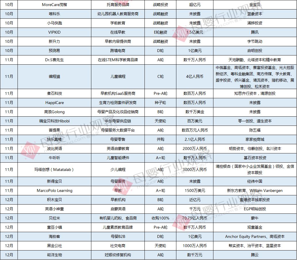 | 2019年母嬰行業投融資報告發布:金額與上年持平,投融資亮點卻大有不同! |