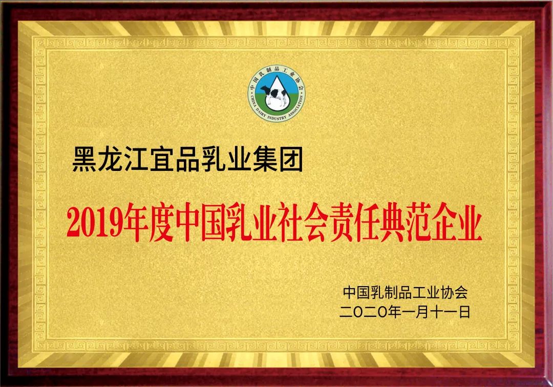 | 宜品榮獲“2019年度中國乳業(yè)社會責任典范企業(yè)”! |