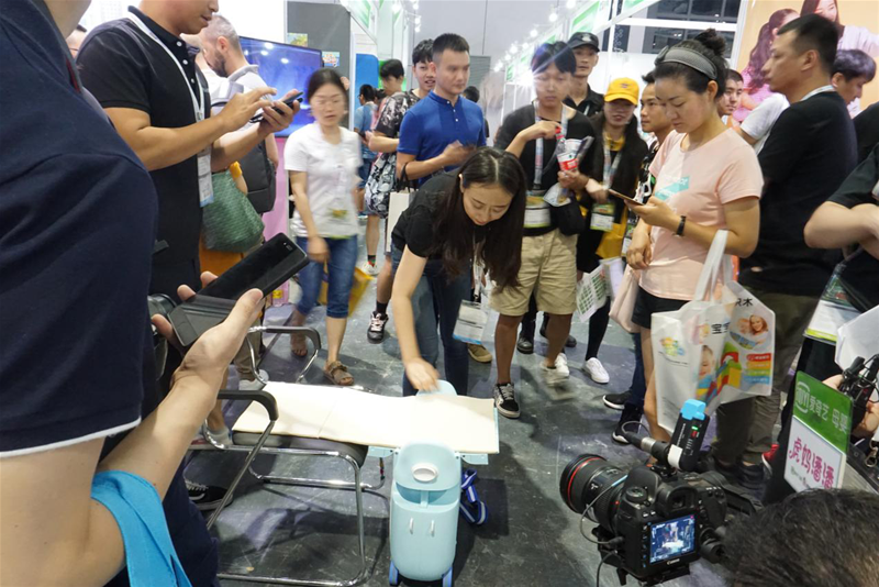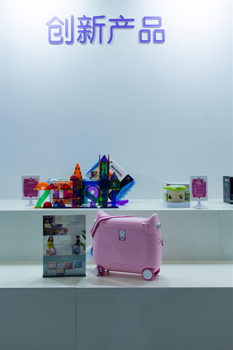 圖片標注:(MuuHoo魔禾兒童行李箱在CBME創新區域展示。)