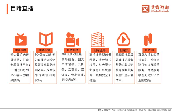 目睹直播 目睹Mudu.tv隸屬于杭州雅顧科技有限公司,提供企業(yè)級視頻云平臺服務(wù)。產(chǎn)品被廣泛應(yīng)用于品牌推廣、產(chǎn)品營銷、企業(yè)會議、政務(wù)直播、綜藝直播、新聞報(bào)道等場景。艾媒咨詢分析師認(rèn)為,疫情當(dāng)下,各協(xié)同辦公產(chǎn)品都迅速通過免費(fèi)開放服務(wù)、升級原有功能以及針對疫情開發(fā)新的服務(wù)功能等方式,來對接不斷增長的需求,在幫助企業(yè)“戰(zhàn)疫”的同時,推動在線辦公得到較快的發(fā)展,短期用戶數(shù)量及使用時長有望實(shí)現(xiàn)爆發(fā)增長,但持續(xù)性有待觀察,因此給予“相對樂觀”評級。