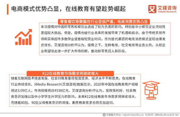 以上內(nèi)容節(jié)選自艾媒研究院發(fā)布的《2020中國新冠肺炎疫情正/負(fù)影響行業(yè)及典型企業(yè)業(yè)績影響分析報(bào)告》