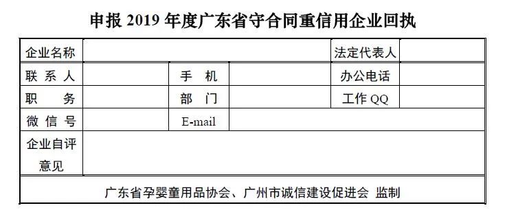 各會員企業(yè)、有關單位: 為鼓勵支持企業(yè)加強合同和信用管理,推動企業(yè)守法誠信經(jīng)營,促進我省企業(yè)信用體系建設,我會與廣東省市場監(jiān)督管理局授權委托單位廣州市誠信建設促進會聯(lián)合開展2019年度廣東省“守合同重信用”企業(yè)公示活動。“守合同重信用”資質企業(yè),享受22個政府機構71項優(yōu)惠扶持政策。現(xiàn)將有關事項通知如下: 一、企業(yè)申報“守合同重信用”的重要性: (一)有利于提高企業(yè)誠信度和樹立企業(yè)良好形象,有利于增強企業(yè)市場或在同行中的競爭力。 (二)將可享受工商、海關、稅務、檢驗檢疫、質監(jiān)、建設、科技等16個行政部門的50多項優(yōu)惠扶持政策,包括辦證、產品進出口通關、工程招標和信貸、財政扶持等一系列優(yōu)先和優(yōu)惠政策扶持。 (三)利于廣告宣傳網(wǎng)站推廣,產品及其包裝、裝潢、說明書、展會等可使用守合同重信用企業(yè)字樣。 (四)政府采購優(yōu)先或工程招標加分;許多重大工程招標及產品采購都會對獲得“守合同重信用企業(yè)”認定的企業(yè)優(yōu)先采用或中標等。 二、申請條件 公示企業(yè)應符合下列條件: (一)領取營業(yè)執(zhí)照并開業(yè)滿二年(截止計算日期至2019年12月31日); (二)建立合同管理機構和合同管理制度,合同信用管理體系健全; (三)合同履約狀況良好。除不可抗力、對方違約或雙方協(xié)議解除等法律規(guī)定的情形外,合同履約率100%; (四)無嚴重違法違規(guī)經(jīng)營行為記錄,未被列入“全國企業(yè)信用信息公示系統(tǒng)(廣東)-經(jīng)營異常名錄或嚴重違法企業(yè)名錄”; (五)企業(yè)經(jīng)營效益好,且同意由公示監(jiān)督機構將本企業(yè)申請年度的合同簽訂與履行情況、總產值或銷售額等信息在“守合同重信用”公示系統(tǒng)向社會公示。 三、申請材料 (一)《2019年度“守合同重信用”企業(yè)公示活動申請表》; (二)《2019年度“守合同重信用”企業(yè)公示活動申請承諾書》; (三)企業(yè)2019年度資質證書、榮譽證書復印件(加蓋公章); 首次申請企業(yè)提供第(一)(三)項材料;已公示2018年度“守合同重信用”的企業(yè),提供第(二)項材料。 四、注意事項 (一)21個地市的企業(yè)均可申報,企業(yè)可自行向屬地市場監(jiān)督管理局相關部門申報; (二)向協(xié)會申報的企業(yè)步驟如下: 1)在3月26日至4月20日前向我會秘書處提交《申報2019年度廣東省守合同重信用企業(yè)回執(zhí)》; 2)協(xié)會收集和依據(jù)企業(yè)提交的申請回執(zhí),初步調研評價,并向誠信促進會推薦; 3)企業(yè)將準備好的申請材料上報與我協(xié)會合作的誠信促進會,企業(yè)等候公示結果。(具體對接由協(xié)會通知) (三)公示時間:6月1日、7月15日 (四)發(fā)證時間:7、8月 聯(lián)系人:戈怡瑾,聯(lián)系電話:13660160691 楊秀清,聯(lián)系電話:13527709317 梁月蓮,聯(lián)系電話:13535258311 郵箱:463215340@qq.com