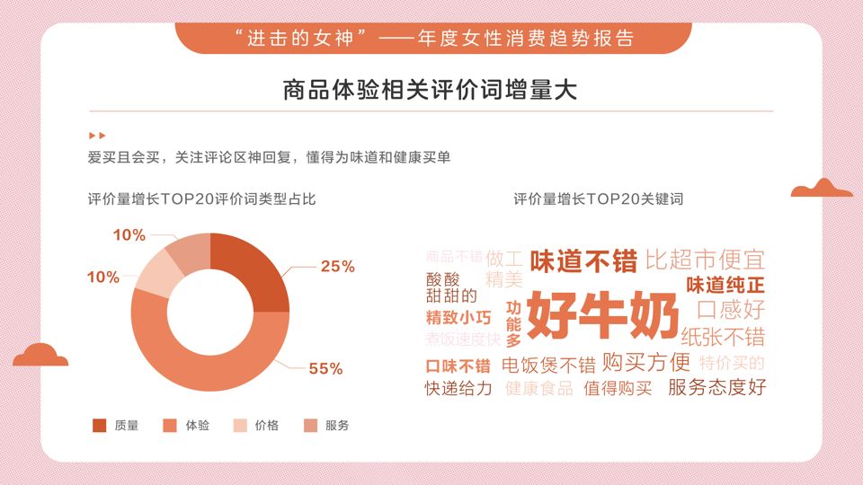 當我們消費了一件商品,對商品總會有自己的感受,而這些感受往往成為之后的消費者用以參考的點。當代女性在參考的時候,會關注商品的哪些方面?