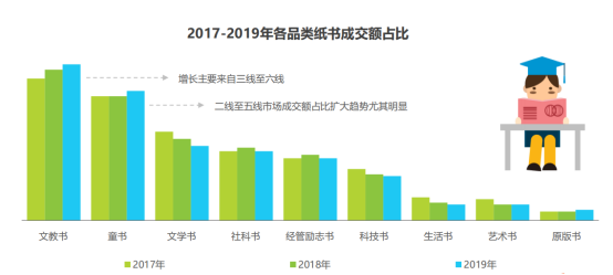 京東圖書與艾瑞咨詢聯合發布了《2019中國圖書市場報告》 當當網數據顯示,2019年42.2%父母購買孩子相關的書籍11本及以上,對比2018年84.9%的家長購書數量有所增加,同時2019年1至10月當當童書和親子家教類圖書銷量同比增長54%。京東數據顯示,2014-2018年,童書總銷售量平均增速50%以上。 在童書出版格局上,國內童書出版已從原來的出版向大眾化出版過渡,全國580多家出版社,截止2019年9月,共有555家出版社參與少兒圖書市場競爭,碼洋占有率大于等于3%的只有4家。 在童書出版品種上,年出版童書4萬多種,總量世界第一;在童書出版市場上,擁有3.67億未成年人的巨大的童書市場,年總印數達8億多冊,在銷品種30多萬種,銷售總額200多億人民幣。 ▋動腦與動手雙管齊下 ,玩具書將成市場寵兒 全民閱讀時代,成人關注閱讀,同時也注重培養孩子的閱讀愛好。童書正在變得大熱,繪本因其豐富的圖畫內容,更適合構建兒童的認知世界,變得越來越受歡迎,當放眼科普類童書暢銷榜,雖然引進版讀物仍是主流。但這類圖書不僅動腦也動手,讓“顏值”頗高的科普類童書很受歡迎。除此之外,還有玩具書。 京東數據顯示,近三年(2017~2019)各圖書類型成交額占比排序相同,文教書、童書和文學書一直排名前三。隨著童書品類的豐富和細分,家長可以依據興趣、年齡、功能給孩子選擇圖書,在京東平臺紙書品類銷售中,2019年童書細分品類成交額TOP10分別是兒童文學、繪本、科普/百科、幼兒啟蒙、動漫/卡通、少兒英語、智力開發、手工/游戲、玩具書、學前教育。被稱為童書的“四大金剛”,即兒童文學、繪本、科普/百科、幼兒啟蒙,排列前四的地位依然穩固。 科普/百科類增速明顯。京東數據顯示,科普/百科同比增速最高近40%,在2018年,科普/百科成交額只是兒童文學書的一半,2019年占據六成。將奇特想象和抽象的科學知識完美融合的科普書,知識清晰嚴謹,是另類自然科學教育方式。讓我們看到在繪本、故事書之外,科普類童書正在成為家長們爭相為孩子選購的童書種類。同時,伴隨國家整體科技熱,將給科普/百科類童書帶來良好的發展前景。動漫/卡通排在第五,雖然有動畫片或兒童IP的基因,但其規模還是小于前四類童書。值得注意的是,授權出版類的書籍中,迪士尼在各個國家均表現優秀。 在文教書細分品類中,幼小銜接品類成交額4倍增長。為了緩解入學焦慮,讓孩子順利實現幼小銜接,幫助孩子完成由幼兒園向小學的身份過渡,幼小銜這一品類,2019年成交額是2018年的4.2倍,每年開園之前,一些幼小銜接書都會熱銷。 目前,中國童書市場已趨向多樣化,傳統的教育系列圖書已不再主導,此前,玩具類紙板書、活動包并不受歡迎,但現在成為了市場的寵兒。從上升趨勢來看,玩具書品類在童書細分品類成交額排名從2017年的12名提升到2019年的第9名。從成交額來看,2018年玩具書的成交額同比增速超過100%;2019年同比增速雖然有回落,但也保持著高增速。 總體來說,包含學前教育內容的讀物正在變得受歡迎,帶有AR、VR元素的書日漸獲得青睞,這得益于中國的教育改革。 報告顯示,一二線市場仍是主力地區,低線市場是增長引擎。在地域成交額分布上,從2017到2019這三年的童書市場增速尤為明顯的是二線至五線市場。 但不同的城市,選擇童書類型有所差異。2019京東消費數據顯示,一線育兒重視英語,二線重視智力開發和動手,三線愛讀繪本,四至六線以文學類為主。