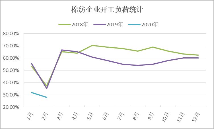 據(jù)統(tǒng)計(jì),截止到2月底國內(nèi)棉花商業(yè)庫存為614.3萬噸,環(huán)比下降2.5%,同比增加3.2%,處于近5年同期最高水平。由此可見,棉花市場(chǎng)供應(yīng)寬松,短期供應(yīng)端不支撐棉價(jià)上漲。 下游棉紡企業(yè)開工負(fù)荷同比大幅下降令棉花消費(fèi)預(yù)期下滑