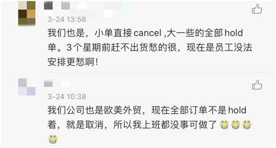 危機之下,只能斷臂求生。精度表業表示接受全體員工(不分職級、崗位)辭職,急辭即走不扣除代通知金。與此同時,精度表業決定根據經營及情況需要,作出全廠放假安排,時間暫定3個月。 3天內2家大廠被迫踩下急剎車,讓人忍不住道一聲惋惜。然而,在這股海外疫情沖擊波下,東莞外貿公司勒緊褲腰帶過日子的窘況,只是整個外貿公司現狀的一個縮影。 外貿工廠這兩月 訂單量驟減,員工一周一周地放假 “很多外貿公司和工廠已經停工放假了。”外貿人萬萬沒想到,復工之后會是這般景象。 世界衛生組織實時統計數據顯示,截至北京時間3月27日1時,全球新冠肺炎累計確診465915例。目前,全球已經有199個國家地區出現確診病例,中國以外新冠確診超過38萬例。形勢嚴峻,可見一斑。 伴隨著疫情蔓延,全球超60個國家或地區宣布進入緊急狀態,比如瑞士、西班牙和菲律賓等等。與此同時,還有部分國家或地區宣布“封國”和“封城”,比如意大利3月10日起全國范圍內封城,美國加州3月19日起封城,印度3月24日起封國等等。 全球疫情的影響漸漸顯現,外貿行業首當其沖。一張在外貿人朋友圈廣為流傳的圖片生動闡述了外貿行業的境遇——2020年,外貿是最難的行業。國內剛剛打完上半場,國外繼續下半場,外貿人看完全場。