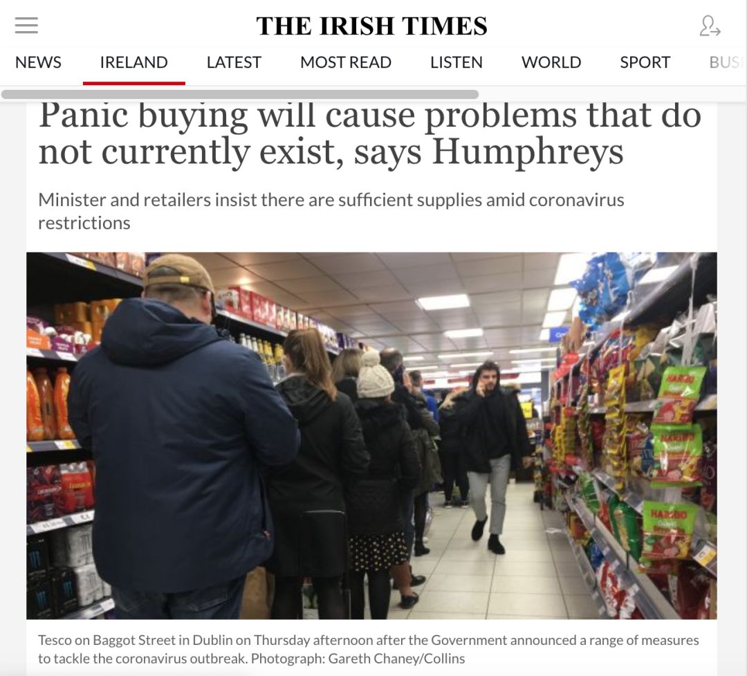 不少國家的當地超市也出現了“搶購潮”。小食代留意到,據多家外媒近日報道,由于擔憂疫情,澳洲、英國、愛爾蘭等地的消費者紛紛去超市搶購嬰兒奶粉、廁紙等食品和生活用品。 澳洲的一些消費者在社交媒體上反饋說,當地超市的嬰幼兒配方奶粉出現了缺貨。有英國消費者呼吁,超市應該推出嬰幼兒配方奶粉限購措施。 愛爾蘭商務部部長則表示,隨著應對疫情的緊急措施實施,民眾不必恐慌性購買物資,會有充足的庫存。在被問到是否應該限制消費者購買產品(例如嬰兒配方奶粉)的數量時,該部長表示“沒有必要”,但也會和零售商討論這一問題。