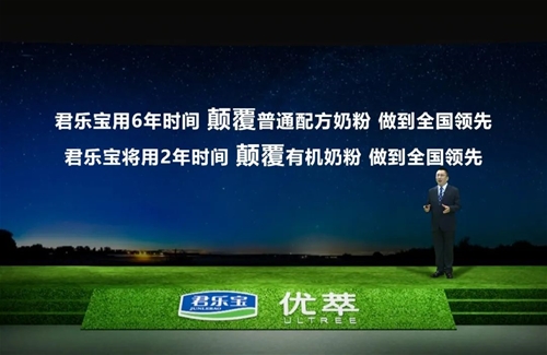 @君樂寶優萃有機奶粉 那么,君樂寶優萃有機奶粉該如何顛覆市場呢?君樂寶從三方面入手。第一采用全產業鏈自有牧場鮮奶生產;第二添加適度水解蛋白;第三雙益生菌組合。 值得一提的是,君樂寶已經做了二十多年益生菌的研發工作,因此發揮君樂寶益生菌科研優勢,研發了益生菌有機奶粉,每一百克奶粉中含有十八億的活性益生菌。 有機奶粉已經在國內發展多年,市場上也已經有數十款有機奶粉產品,為何選在這個時候顛覆有機奶粉市場呢?君樂寶方面表示,有機食品在全球越來越受消費者歡迎,這是一種趨勢。并且經過君樂寶的調研發現,目前低質高價是有機奶粉品類遇到瓶頸的關鍵原因。 此外,價格也是有機奶粉行業遇到瓶頸的關鍵問題之一。據了解,君樂寶有機奶粉800g/罐售價為329元,并且整箱六贈一,折合每罐的價格為282元。這個價格幾乎與市場上很多普通奶粉的價格持平,非常具有競爭優勢。 簡而言之,君樂寶的顛覆策略是,在品質上用更好的有機奶粉顛覆有機奶粉市場、在價格上讓消費者用普通奶粉的價格可以買到有機的奶粉。 03 立志2年做到有機品類銷量領先 君樂寶奶粉自2014年4月上市銷售,首創全產業鏈生產模式和“四個世界級”模式,打破國外奶粉壟斷,被稱為奶粉行業“攪局者”;君樂寶率先通過歐洲雙認證,成為中國首家獲得BRC、IFS雙認證的奶粉品牌,并在全球同行業首家通過了BRC A+頂級認證。 2019年君樂寶奶粉產銷量達到7.5萬噸,自2014年上市以來年均復合增長率達84.5%(同期行業平均增速為8.1%),以領先行業十倍的速度成為全球增長第一,上市銷售不到6年就成為全國銷量領先品牌,并帶動國產奶粉實現反超,國產奶粉市場占有率從2013年僅有30%多,到目前已經增至60%以上,君樂寶奶粉也因此被稱為行業“破局者”。