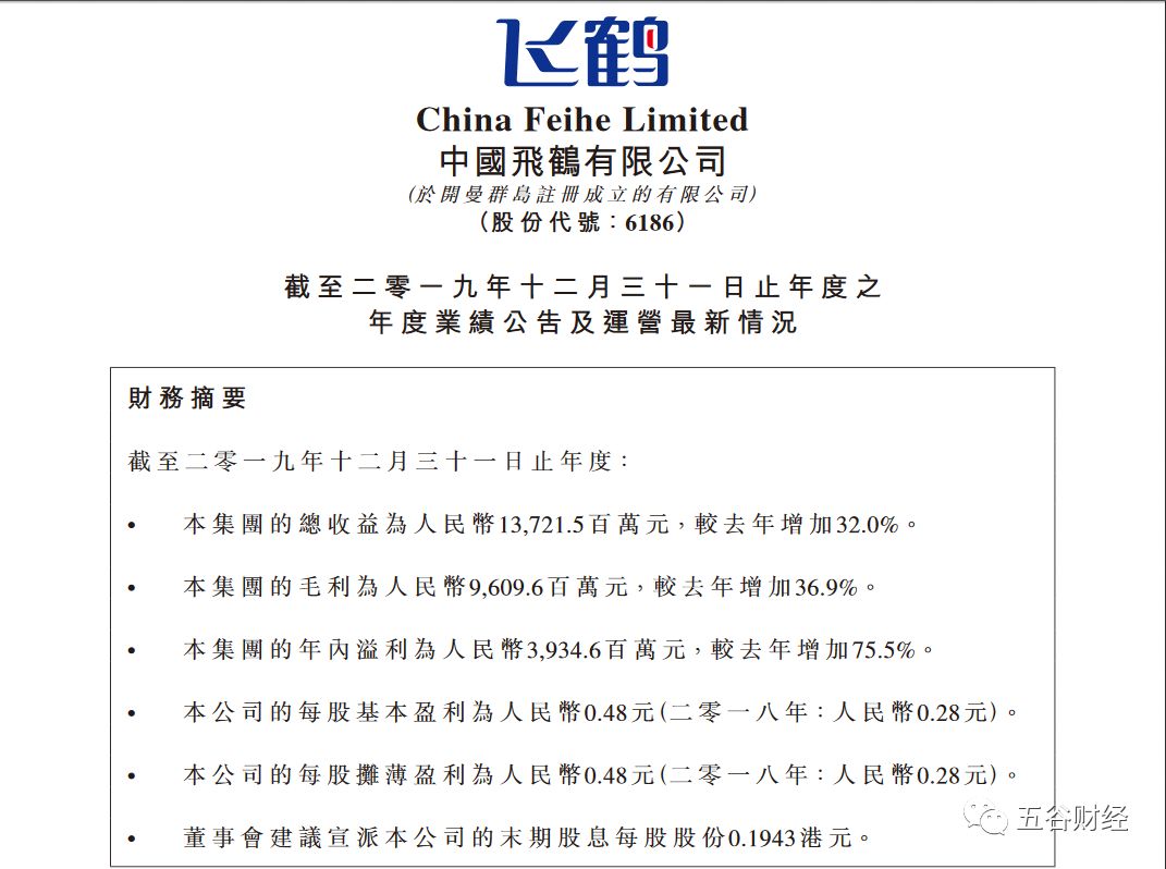 3月23日晚間,飛鶴(股票簡稱“中國飛鶴”)公開了截至2019年12月31日止年度之年度業績公告及運營最新情況,這也是飛鶴“掛牌”H股之后發布的首份年度業績報告。