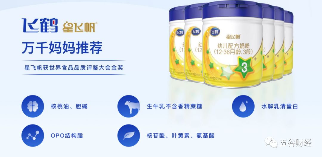 安信國際在研報中指出,飛鶴敏銳察覺到消費升級的趨勢,集中大部分資源打造“星飛帆”這一大單品,定位超高端,并邀請章子怡做代言,使得星飛帆銷量快速上升,并帶動其他產品銷售。
