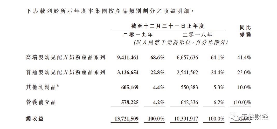 對此,飛鶴方面表示,一是超高端星飛帆及超高端臻稚有機產品系列收益的增長導致的高端嬰幼兒配方奶粉產品系列的收益增長;二是公司品牌力上升導致的普通嬰幼兒配方奶粉產品系列的收益增長;三是其他乳制品(主要為成人奶粉)收益增長。 根據AC尼爾森2019年末公布數據,截至2019年9月30日,飛鶴超過了所有外資品牌,成為中國嬰兒奶粉市場上銷量第一的品牌,線下市場占有率達到13.9%,整體市場份額為11.9%,遠超過市場第二品牌,并繼續呈現不斷提升的態勢。 國金證券在最新發布的研報中指出,飛鶴能夠迅速適應渠道變革、牢牢把握終端渠道,同時迎合消費者高端、細分、品牌化發展的國產企業將會不斷攫取市場份額,獲得快速提升。“飛鶴正是從中脫穎而出的一匹黑馬,我們認為能夠迅速適應渠道轉型并進行調整,同時順勢而為,是飛鶴市占率近年來迅速提升的重要原因之一。” 據悉,飛鶴的毛利率由2018年的67.5%增加至2019年的70%,主要因為其高端嬰幼兒配方奶粉產品系列(在其產品中有相對較高的毛利率)于2019年的銷售占比增加。 《五谷財經》注意到,2019年,飛鶴的高端嬰幼兒配方奶粉產品系列貢獻收入約為94.115億元,占比為68.6%,而去年同期則在64.1%左右。