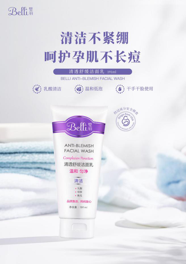 2020一場新冠病毒疫情,讓全國人民在家宅了一個多月,專家提醒戴口罩勤洗手是個人防護的基礎(chǔ)。經(jīng)過多方的努力,全國疫情得到較好的控制,近期除了湖北以外的省市,人們的生活和工作逐漸恢復(fù),對于陸續(xù)復(fù)工的職場孕媽和寶媽,更要注意做好安全防護,少去人員密集的公共場所,在辦公室也要戴好口罩。 但是很多孕媽媽反饋說,雖然最近不怎么化妝但肌膚小狀況頻現(xiàn),什么敏感干燥,出油,粉刺等,不知道是不是經(jīng)常戴口罩的原因,尤其是最近總是就容易出現(xiàn)爆痘的情況,好不苦惱,面對這種情況應(yīng)該怎么解決呢? 孕期臉上容易長痘痘的原因 1、孕激素影響 懷孕期間,由于女性體內(nèi)激素水平的變化,皮脂腺的分泌也較之前旺盛,很多平不怎么有粉刺痘痘困擾的孕媽媽們也更容易長。 2、皮膚清潔沒做好 長痘和肌膚清潔也是緊密相關(guān)的,如果皮膚清潔度不夠,過多的皮脂淤積在毛囊內(nèi),堵塞毛囊的導(dǎo)管,再加上脂肪酸和毛囊內(nèi)細菌的作用本就容易長痘。 3、長期戴口罩 長時間戴口罩,面部肌膚處于相對悶熱潮濕的環(huán)境,為細菌和微生物提供了溫床,肌膚也會更容易出現(xiàn)出油、長閉口、粉刺、痘痘等肌膚問題。 孕期長痘痘怎么調(diào)理? 1、注意肌膚的清潔 首先,要做好日常面部清潔的工作,在疫情期間潔面很重要。 美國孕產(chǎn)期專用護膚品牌的Belli清透舒緩潔面乳,這款潔面選用嚴苛成分安全篩選的成分——乳酸(AHA),乳酸是一種本身就自然存在于人體中的安全成分。這款潔面是透明啫喱狀,值得一提的是它的溫和性,除了做潔面還能作清潔面膜使用,能夠滿足孕期肌膚的清潔需求。
