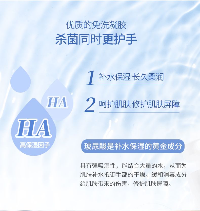 很多禾粉表示天天用免洗酒精,非常干燥,一天洗好多遍直呼手部肌膚受不了,接觸酒精有點刺激,手部都出現皸裂了。消毒凝膠內含有玻尿酸成分,溫和不傷手,殺菌更護手! 除了常見的大腸桿菌、葡萄球菌等,還能有效殺滅多種容易感染生病的病菌!減少手足口病、流感、乙肝等疾病的發生。