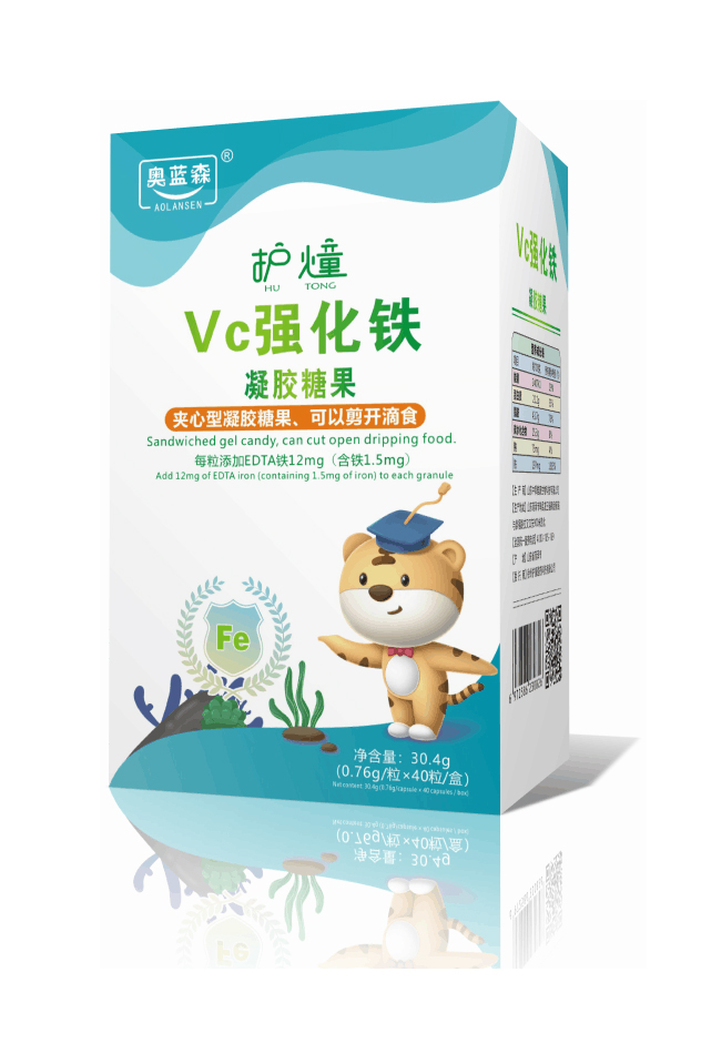 奧藍(lán)森護(hù)燑VC強(qiáng)化鐵凝膠糖果 夾心型凝膠糖果,可以剪開滴食 每粒添加EDTA鐵12mg(含鐵1.5mg)